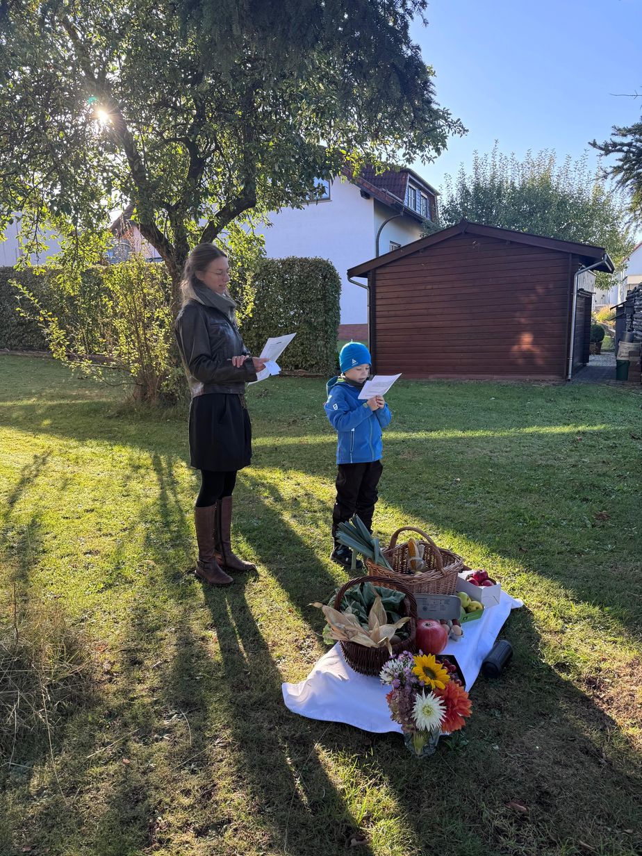 Am Sonntag, den 29. September 2024, fanden sich zur morgendlichen Stunde hinter dem Pfarrhaus der Pfarrgemeinde St. Vitus und St. Anna in Elters/Hofbieber viele Kinder mit ihren Familien ein, um gemeinsam das Erntedankfest zu feiern. Die Kinderkirche fand im Freien, ganz in der Nähe von Gärten, statt – dort, wo unser Essen wächst und gedeiht.